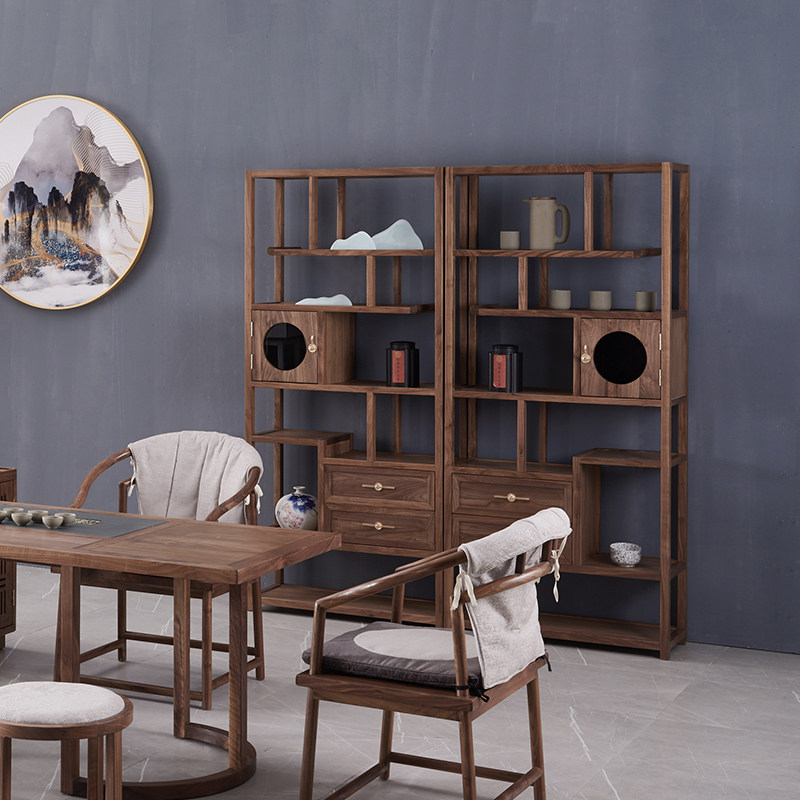 Black walnut Bogu rack new Chinese style partition display cabinet simple modern solid wood Duobaoge rack tea cabinet - Taobao