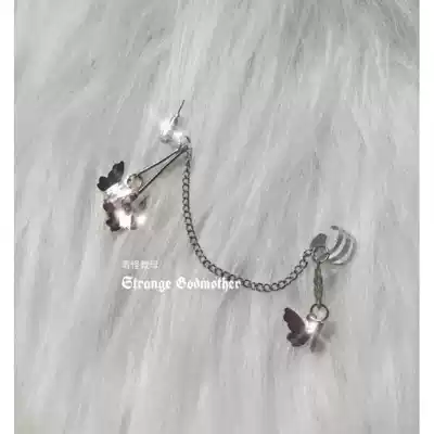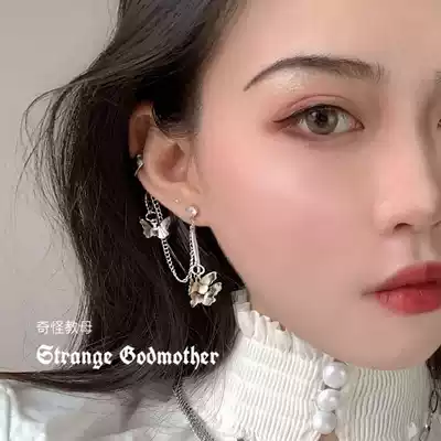 ins butterfly earrings long version of tassel ear clip Super fairy ear clip integrated face thin earrings female