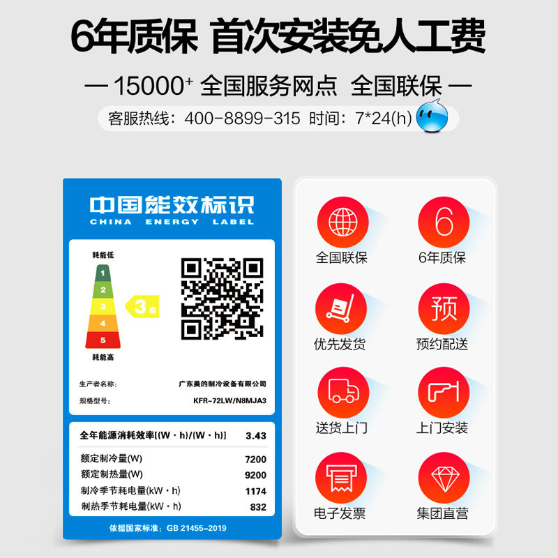 Midea variable frequency air conditioning large 3 p three-p vertical living room household cylindrical cabinet machine New Zhixing 72MJA smart appliances