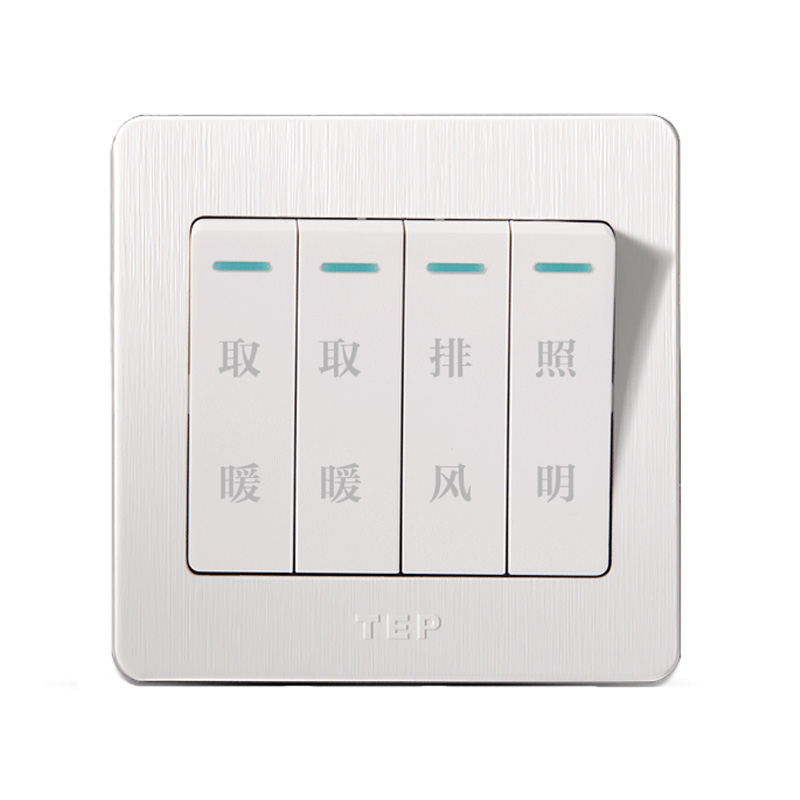Type 86 Bathroom Toilet Slide Cover Type Bath Bully 4 Tandem Switch Panel Four 4 Open Makeup Room Switch Panel Warm Air Light