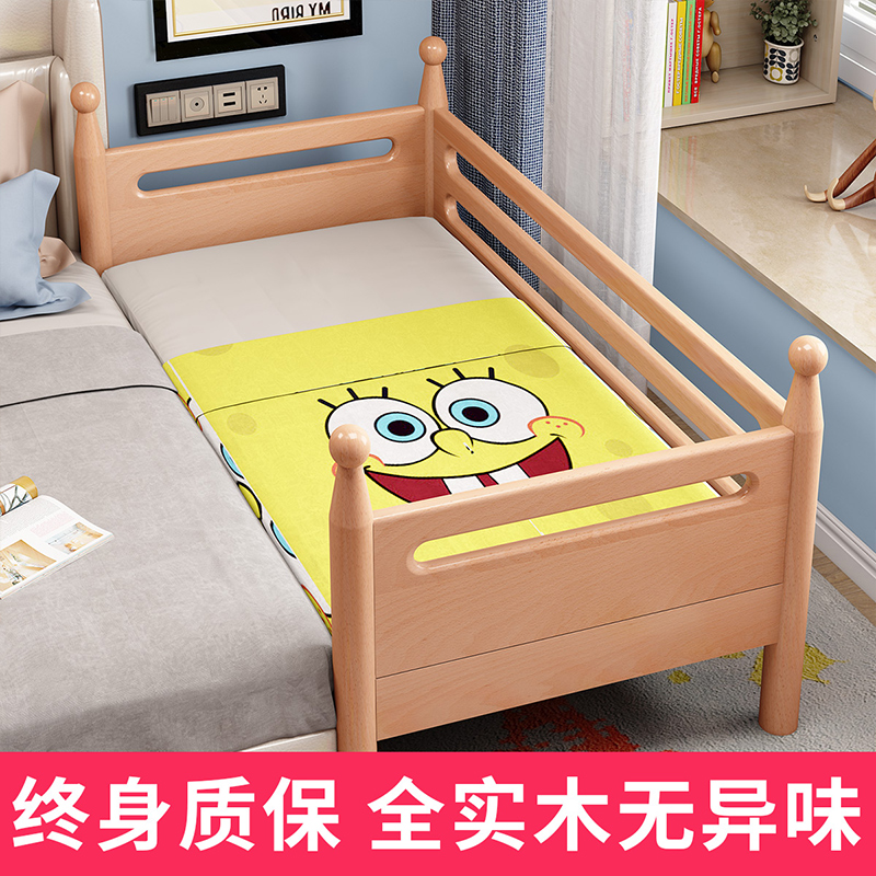 Splicing bed Children's bed Boy girl Beech single bed Widened splicing artifact with fence Newborn baby bed