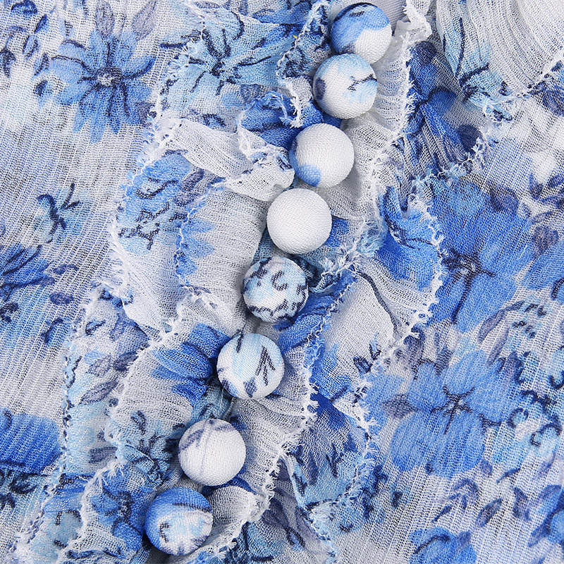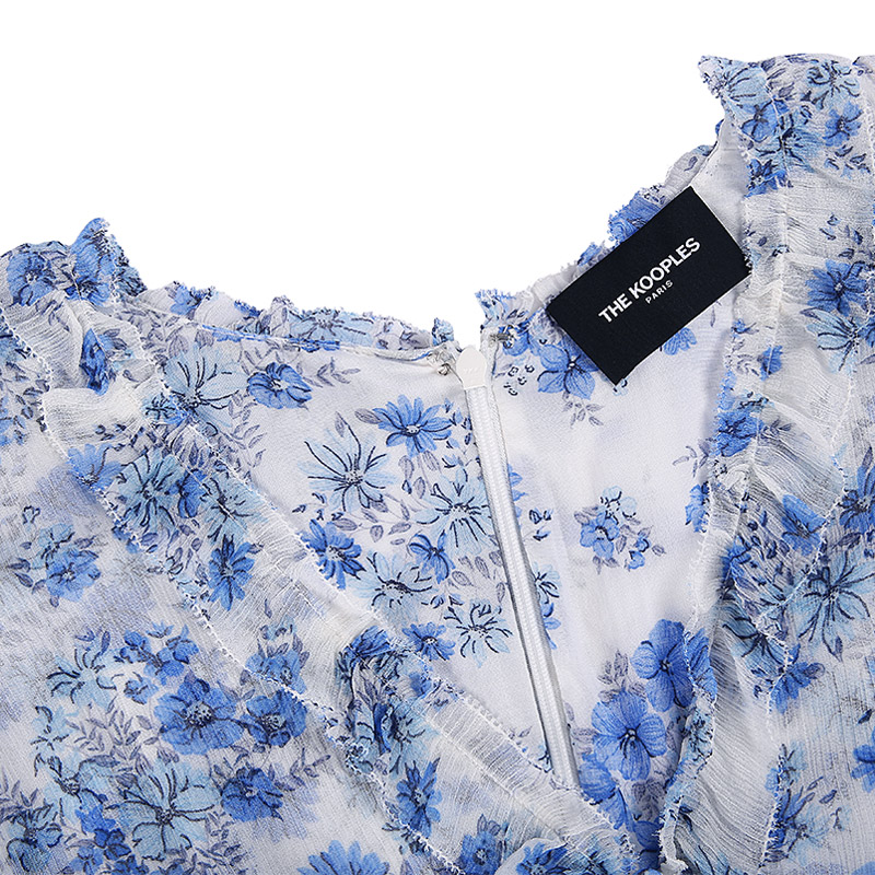 THE KOOPLES 20 spring and summer new puff sleeve printed ruffled dress female FROB20144K