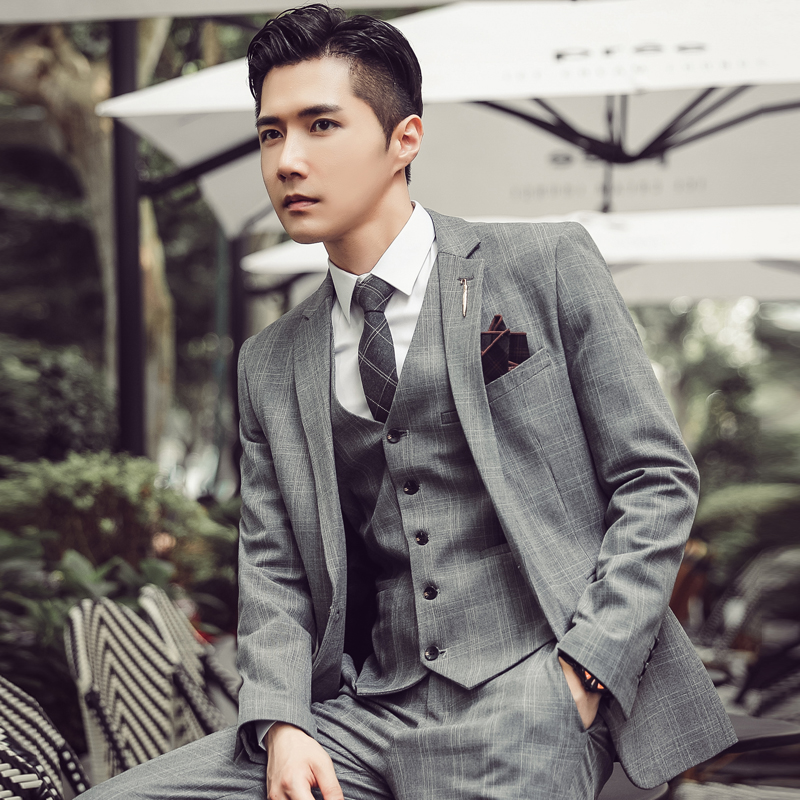 Rich bird suit suit Men's plaid suit three-piece groom wedding dress British style gentleman casual formal dress