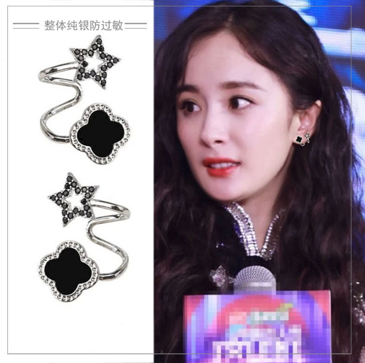The new tide of 2022 is the new tide of high - red earrings of the four - leaf grass ear nails