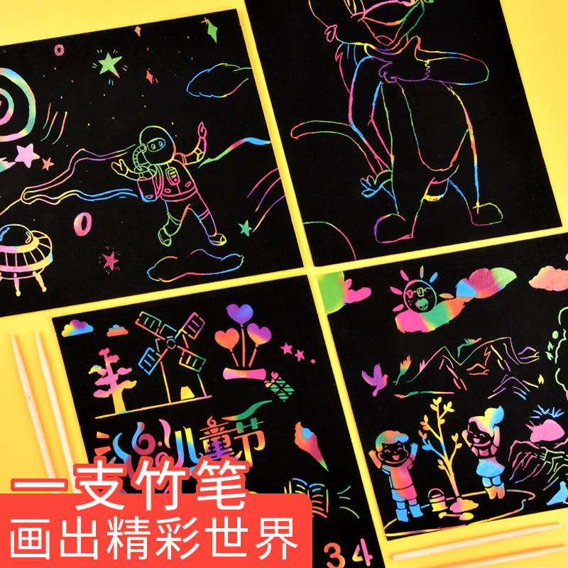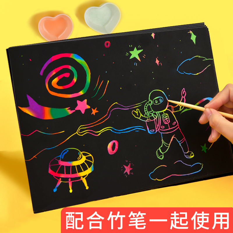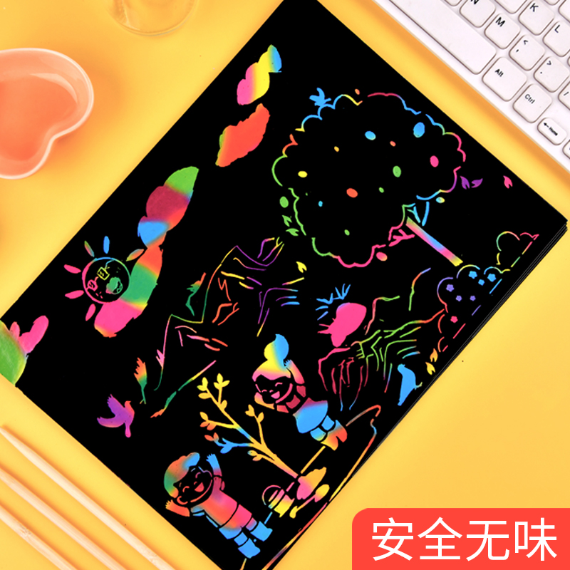 100 scraping paper set for primary school students Kindergarten non-toxic children colorful black scraping paper Art creative diy puzzle a4 hand painting paper discoloration paper Graffiti paper Scraping book