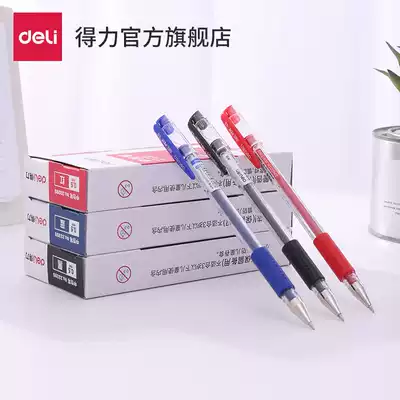 Deli stationery gel pen Student black 0 5mm bullet water-based pen Blue and red signature pen Correction notebook pen Office supplies Writing instruments Gel pen 12 packs