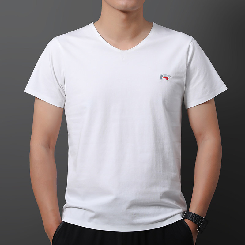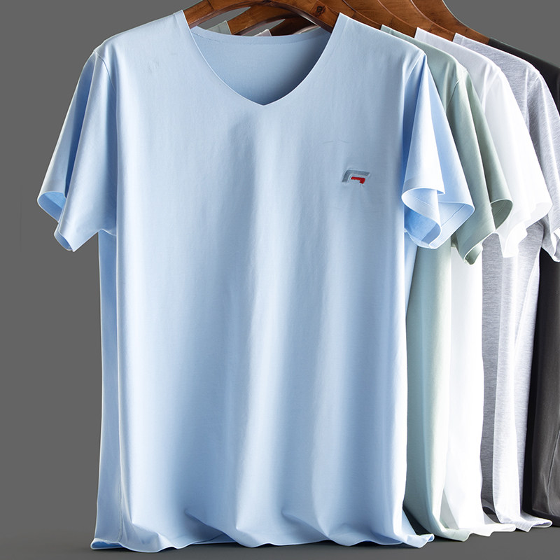 Ice silk short-sleeved T-shirt men's summer self-cultivation quick-drying half-sleeved casual sports solid color mercerized cotton top breathable and loose