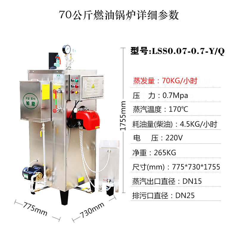 Xuen 70KG Fuel Oil Vapor Boiler Industry Brewing Energy Conservation And Environmental Protection Sterilization Diesel Steam Boiler Commercial