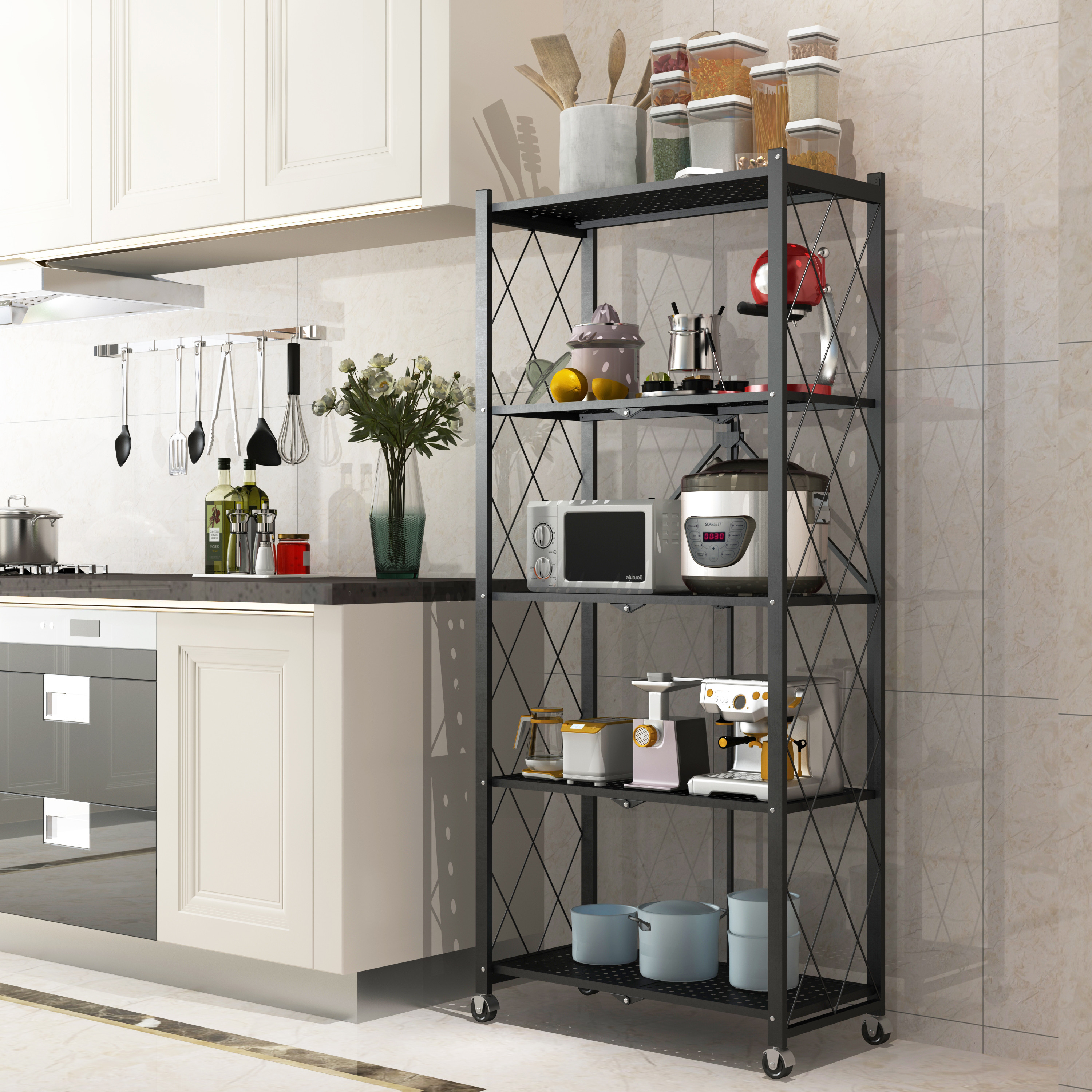 Installation-free folding kitchen supplies rack floor-to-ceiling multi-layer IKEA pot rack microwave oven storage storage rack