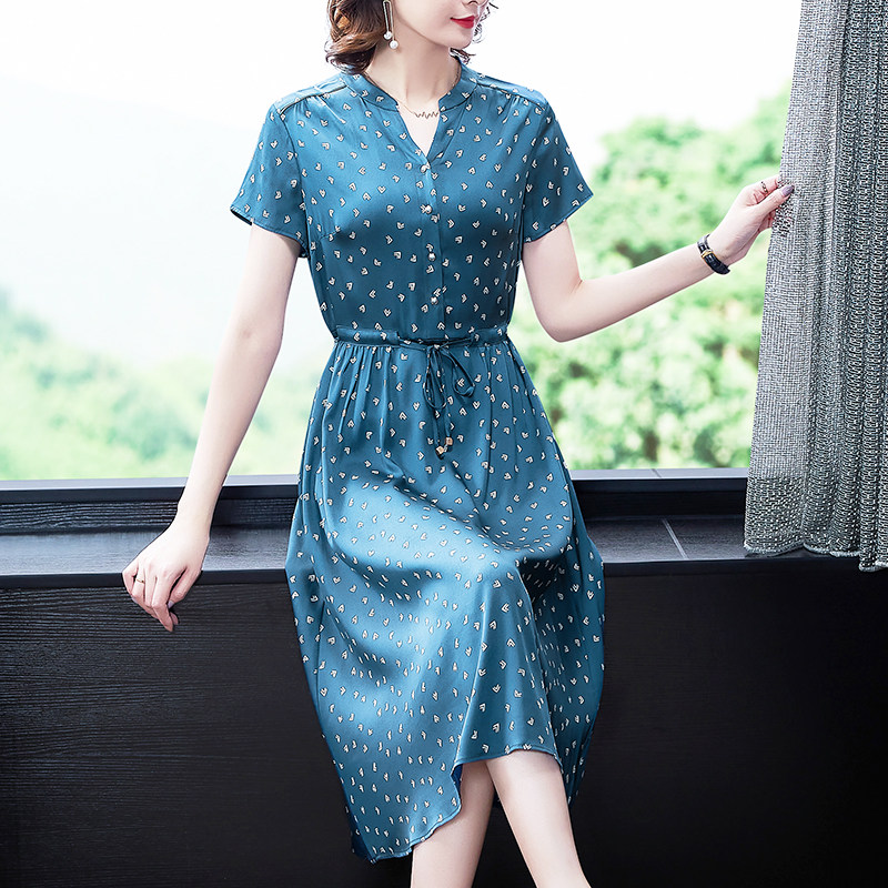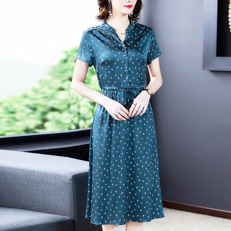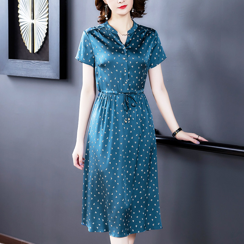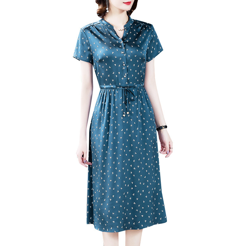 Acetic satin dress 2023 new summer girl silk silk gather slim and noble temperament