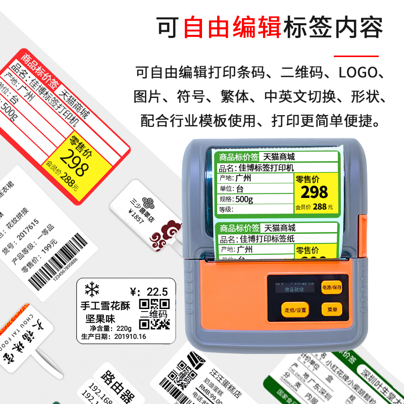 Jiabo M322 Portable Label Printing Machine Thermo-Sensitive Jewelry Milk Tea Super City Shelf Peter Sign Machine Small Handheld Wireless Bluetooth Adhesive Barcode Let-printing Machine Clothing Chandler Merchandise Mark Price Tag