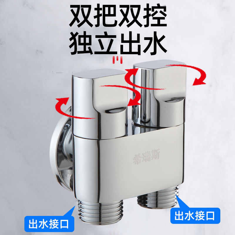 Ultra-short all-copper double-cut one-in-two double-out angle valve three-way one minute two double-use water heater toilet spray gun faucet