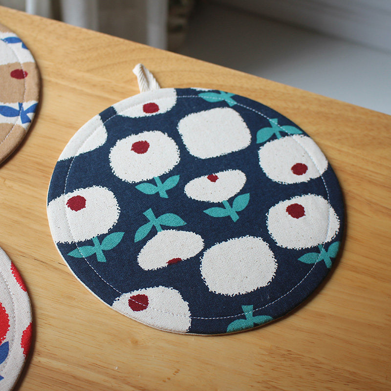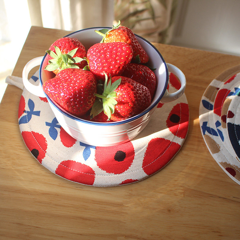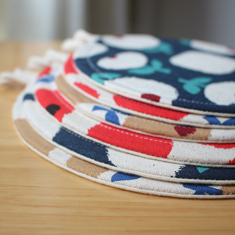 Apple Blossom Nordic Style Round Padded Placemat Pot Mat Bowl Mat Cotton Linen Handmade Photo Background