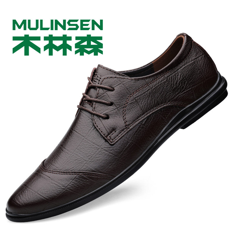 Mulinsen men's shoes summer Korean casual leather shoes men's leather soft bottom breathable business formal black shoes men