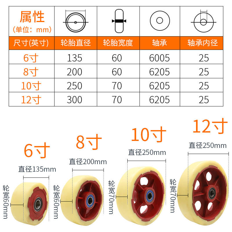 12 Inch Ultra Heavy Caster Iron Core Nylon Wheels Single Wheels 6 Inch 8 Inch 10 Inch Cart Wheels Load 1 ton Wheel