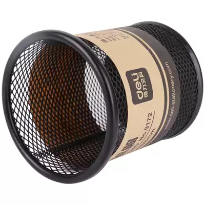 Deli pen holder round metal grid pen insert stationery business pen storage simple mesh creative fashion 9172 makeup brush storage barrel pen box large capacity multi-function simple office supplies