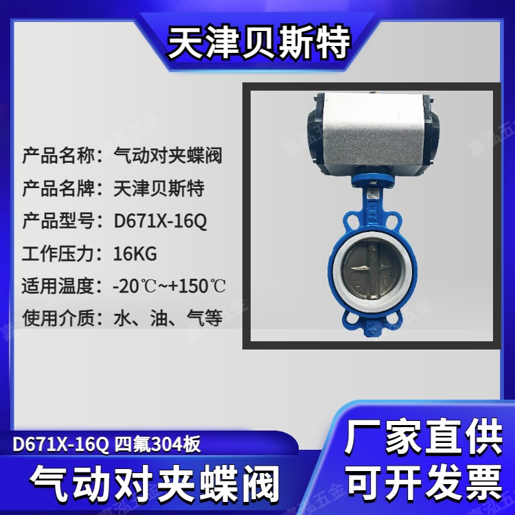 D671X-16 Pneumatic Butterfly Valve GT Pneumatic Wafer Butterfly Valve Lined with PTFE 304 Plate Tianjin Best 50 80 100