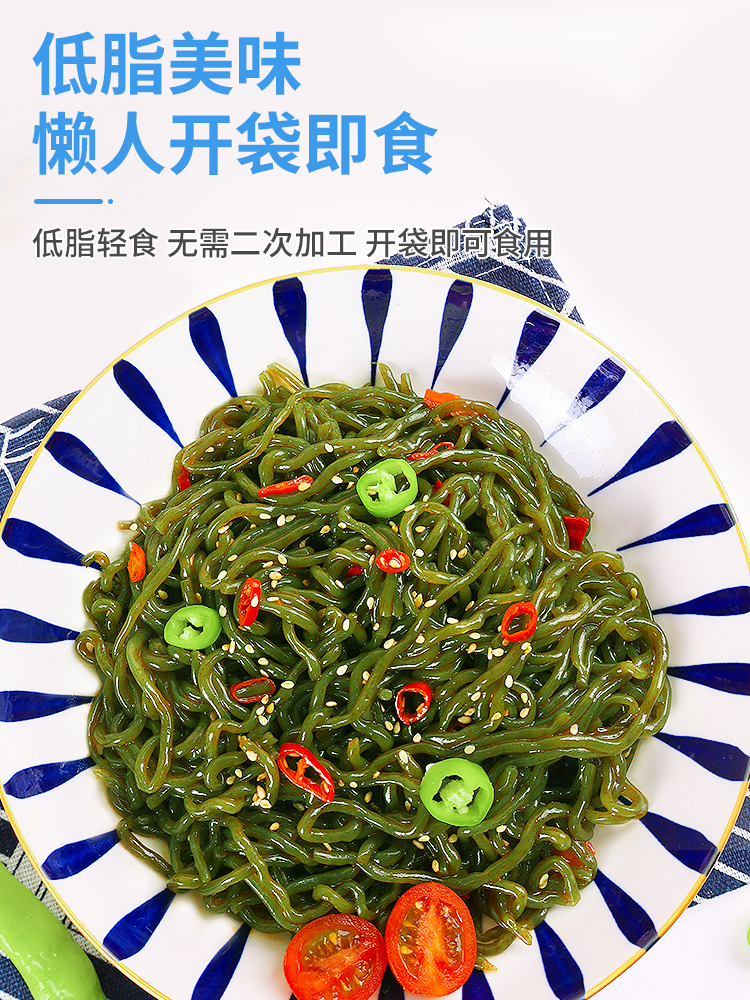 Deep-sea kelp noodles (kelp drinking water edible salt starch) spice brewing vinegar white sugar vegetable oil sesame monosodium glutamate edible salt chicken essence seasoning seafood flavor seasoning powder potassium sorbate