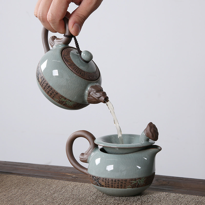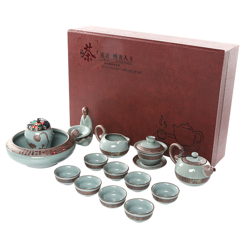 Kongfu tea furniture set group home Gothic cellar tea cup suit complete set of ceramic Ru kiln office teapot gift box