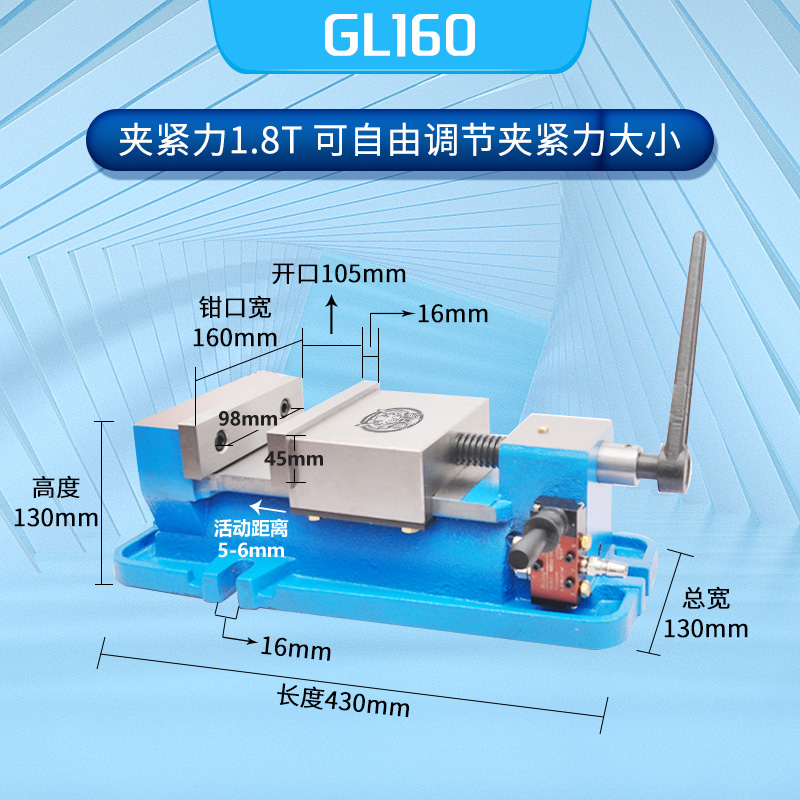 Six inch pneumatic flat jaw precision vise automatic quick clamping table clamp CNC table drill fixture machining center