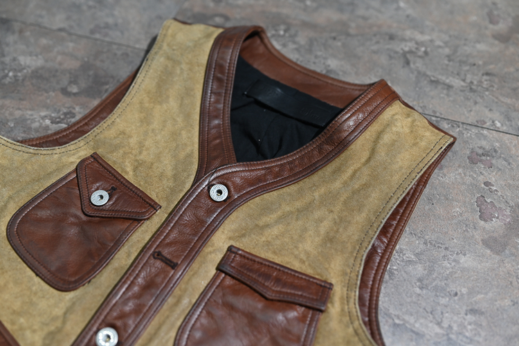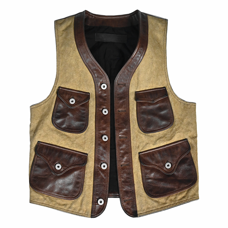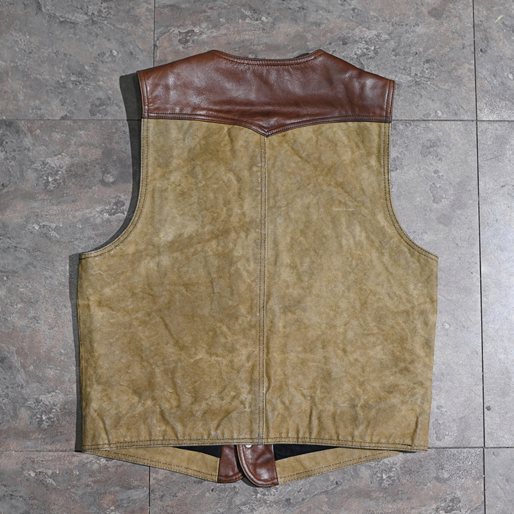 New Pint Day Ensemble Retro small crowd Men's clothing Old Culture Short oil waxed canvas accessories Bull Leather Vest Genuine Leather Male