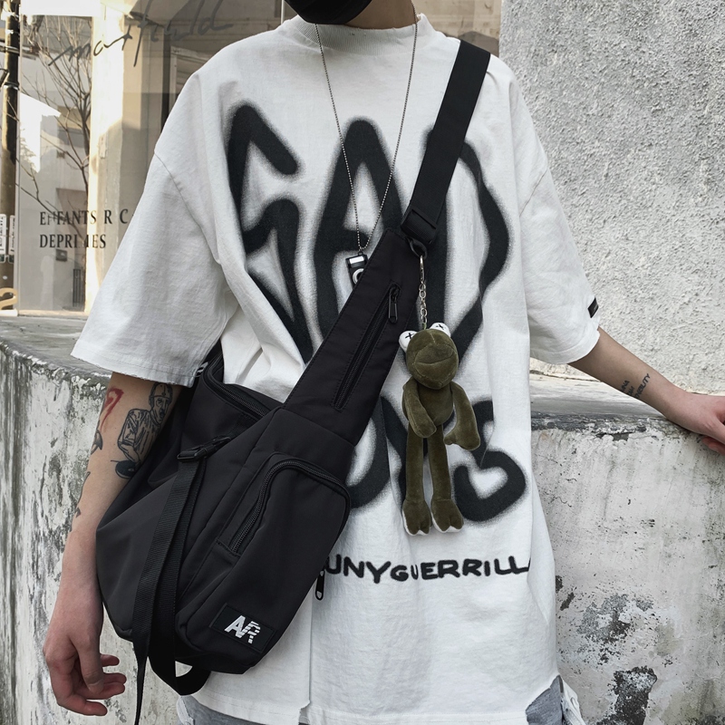 Tooling Bag Slanted Satchel Satchel Male Casual Day Series Functions Wind Street Trend Ins Dark Black Woman Single Shoulder Bag