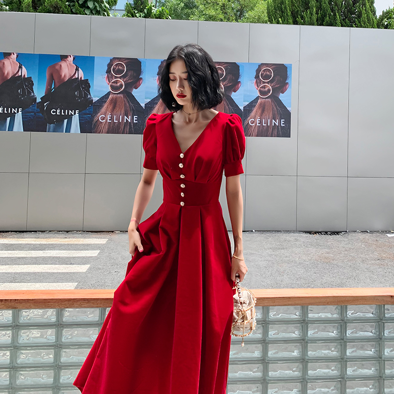 Wine red long edition wine red medium - long edition wine red pregnant woman