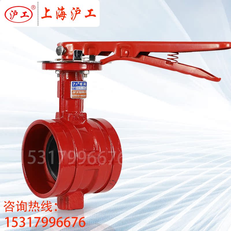 Shanghai Hugong Valve D81X-16Q Ductile Iron Soft Dense Fire Groove Handle Clamp Butterfly Valve DN65 100