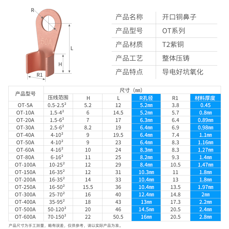 OT open copper terminal block GB copper wire connector terminal block lug copper connector 80pcs boxed