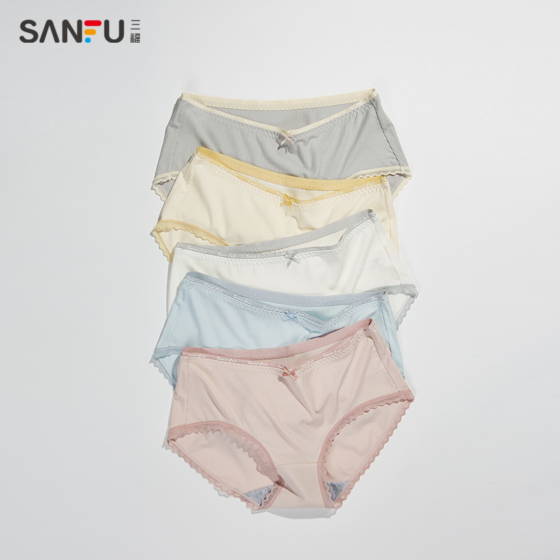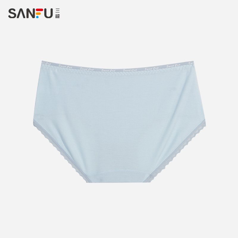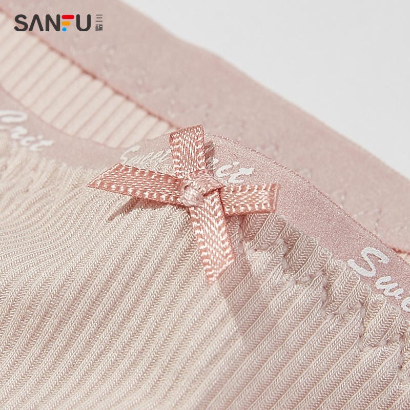Sanfu women's mid-waist panties fashion contrast color lace bow ribbed elastic bag hip panties women 428158