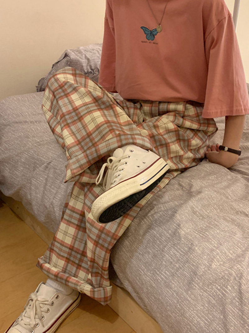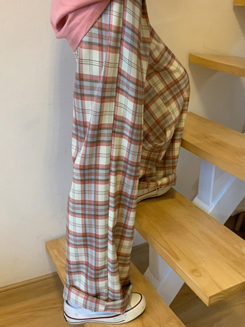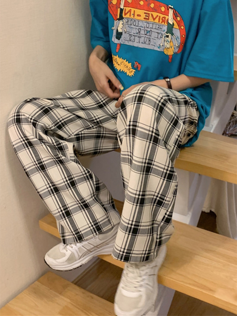Plaid Pants High Waist Loose Straight Drum Pants Slightly Fatter Girls Wear Hitch Big Size Pants Fat Younger Sister Mm Broadlegged Pants To Lean Tide