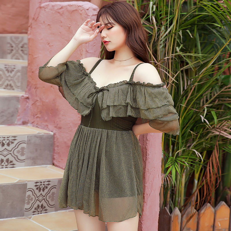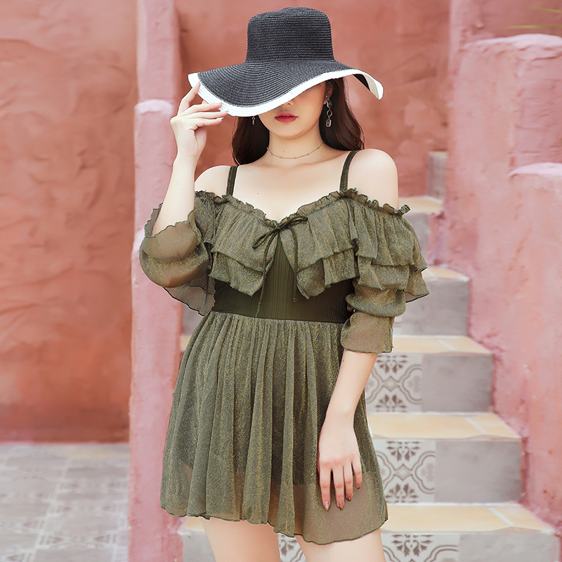 Large size slim fit swimsuit woman fat mm200 catty conservative skirt-style shady spa with small breasts to gather the ins and shoulders