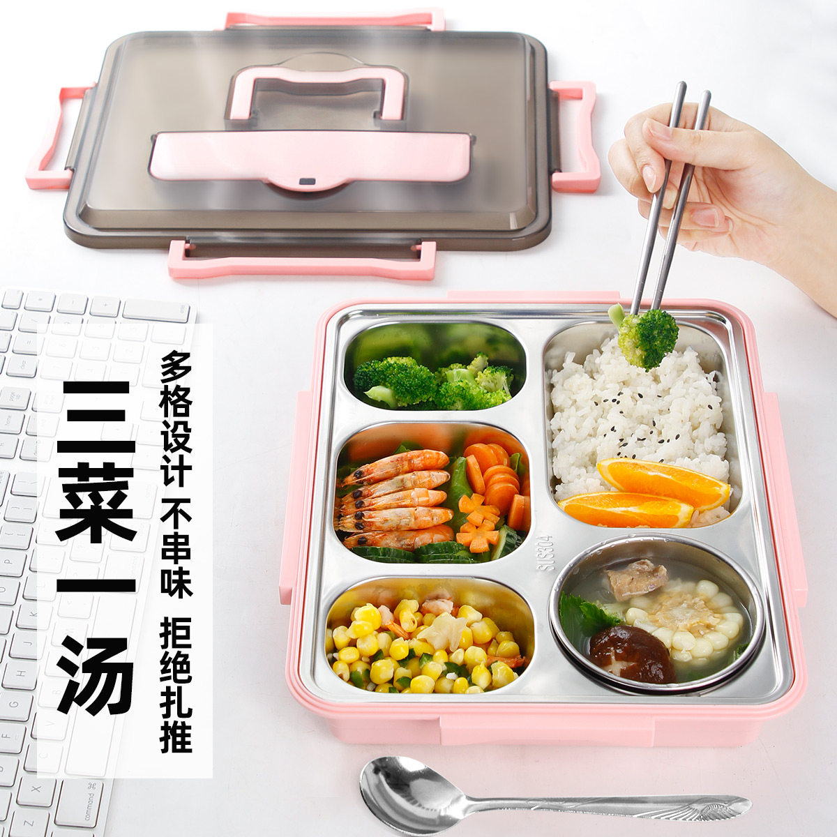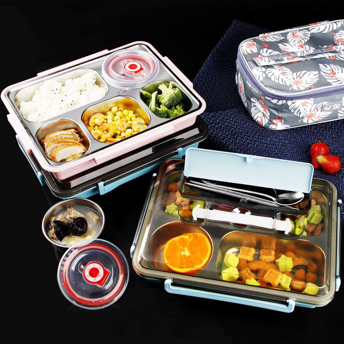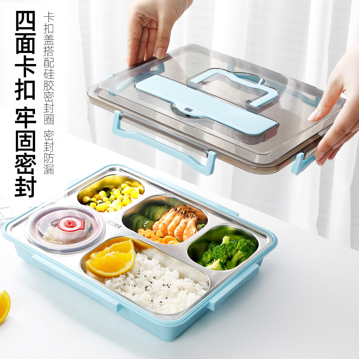 304 insulation lunch box (soft handle orange white) 5 grids delivery package Tableware Soup bowl 304 insulation lunch box (soft handle blue and white) 5 grids delivery packaging tableware soup bowl 304 insulation meal