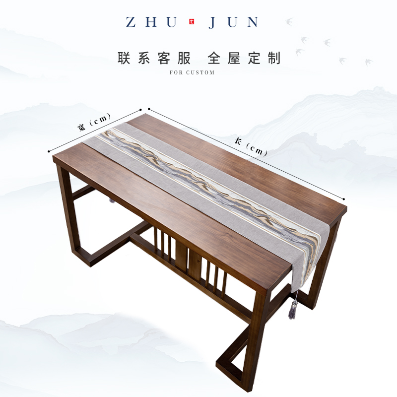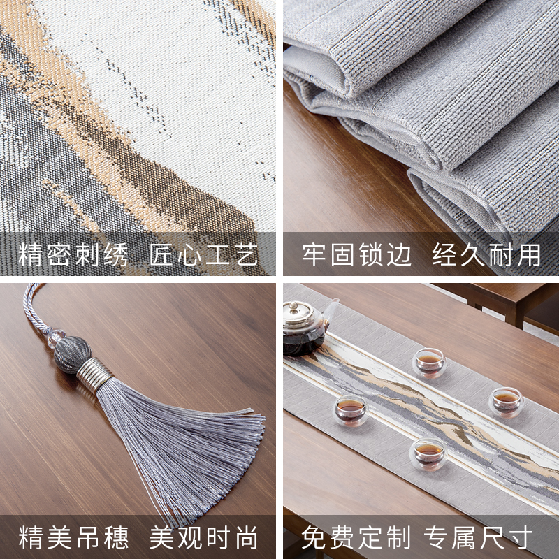 New Chinese Table Flag Modern Chinese Zen Embroidery Great Mountain River China Wind Tea Table Table Tea Mat Table Cloth Customized