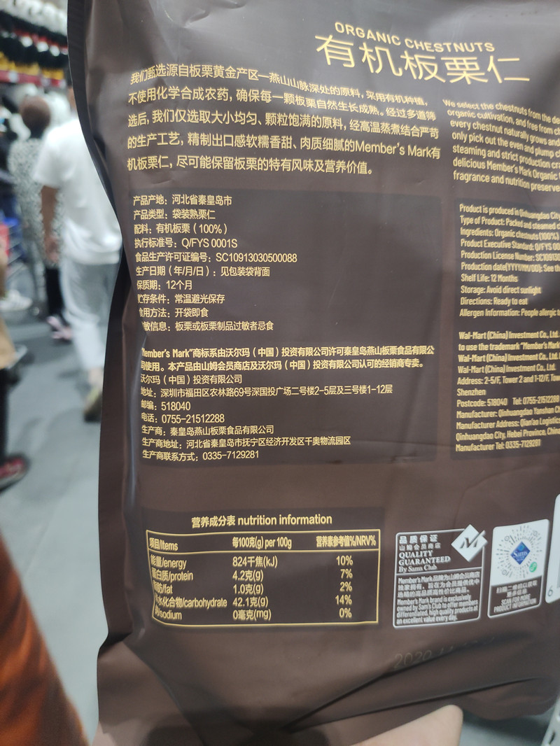 Sam Supermarket MembersMark Handpicked Organic Board Chestnut Kernel Cooked Qanli Sub-zero Food 100g * 10