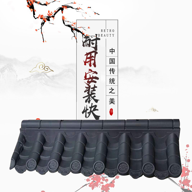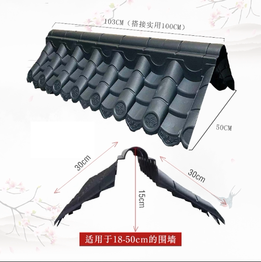 Dark gray wall double-sided tile yard ancient construction horse head wall pressed top hat integrated eaves imitation glass antique tiles
