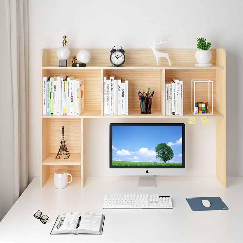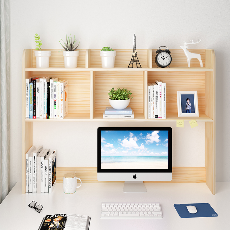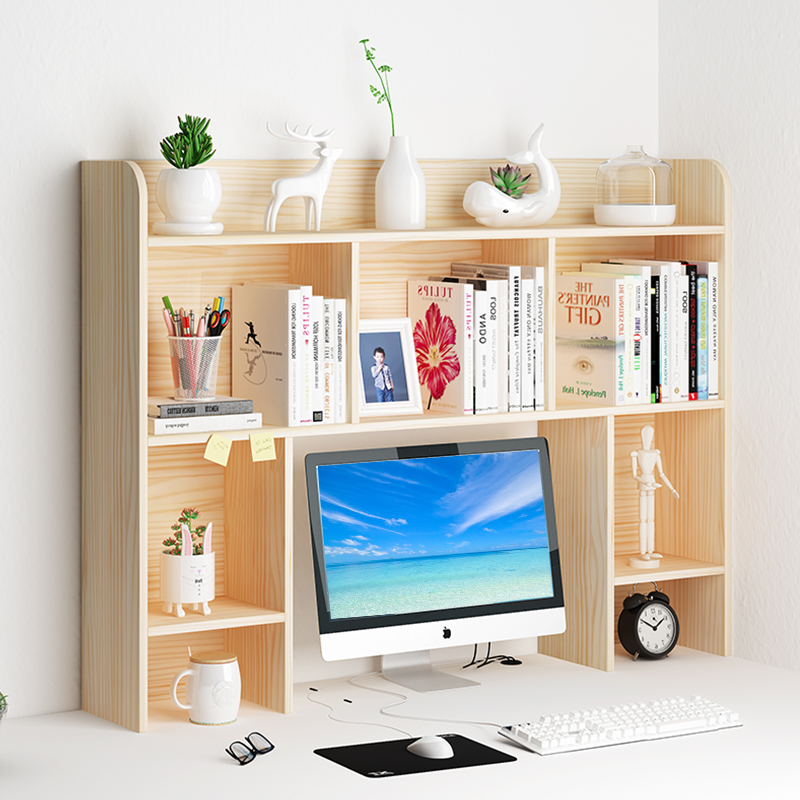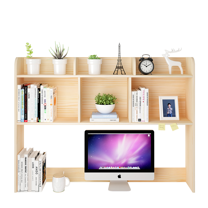 Solid wood desktop bookcase desktop computer desk multilayer shelve table bookcase on the table with small collection of books