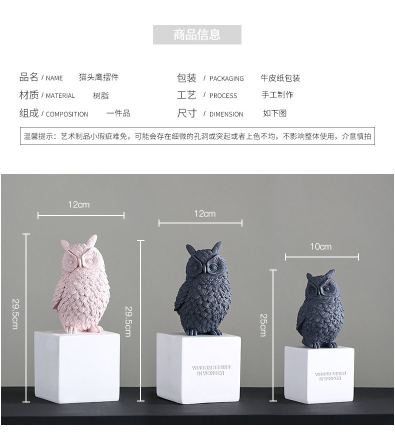 Owl Animal Resin Ornament Creative Gift Simple Soft Decoration Art Home Ornament Resin Crafts
