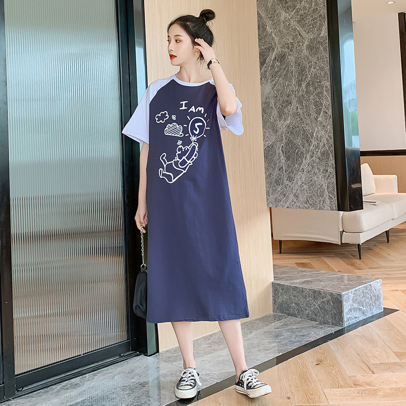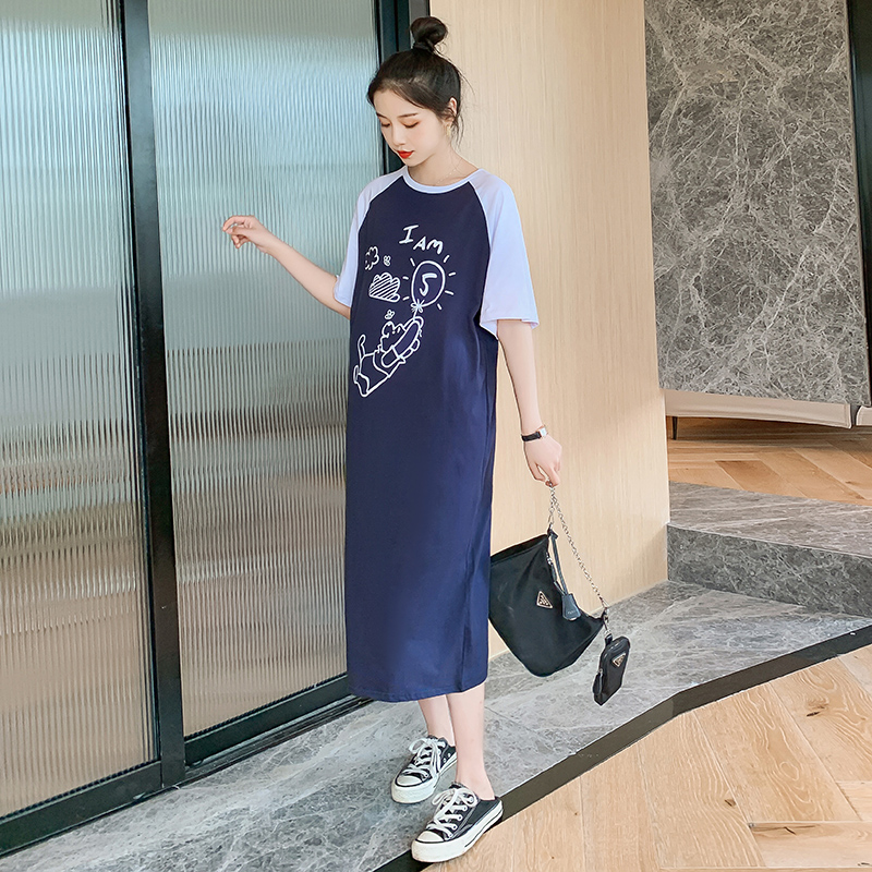 Pregnancy Woman Loaded With Summer Clothing Wave 2022 Xia Fashion Over Knee Slimy Age Loose Pregnant Woman T-Shirt Skirt Summer Pregnant Woman Foreign Dress