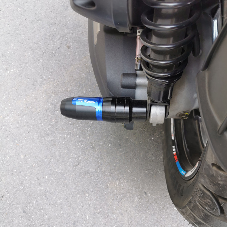 A black (left-left shock absorption) a red (left-left shock absorption) a gold (left-left shock absorption) a blue (left-left shock absorption) and a gray (left-left shock absorption) and a gray (left-left shock absorption) and a gray (left-hand shock absorption) on the left