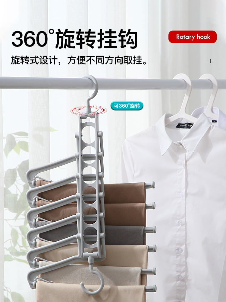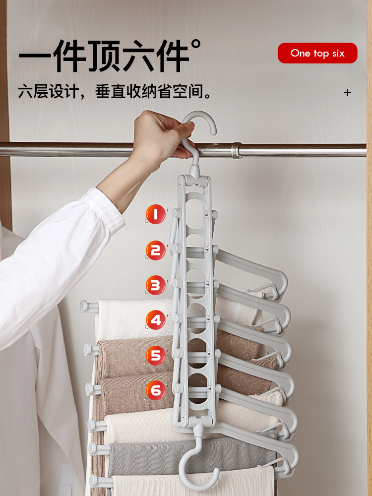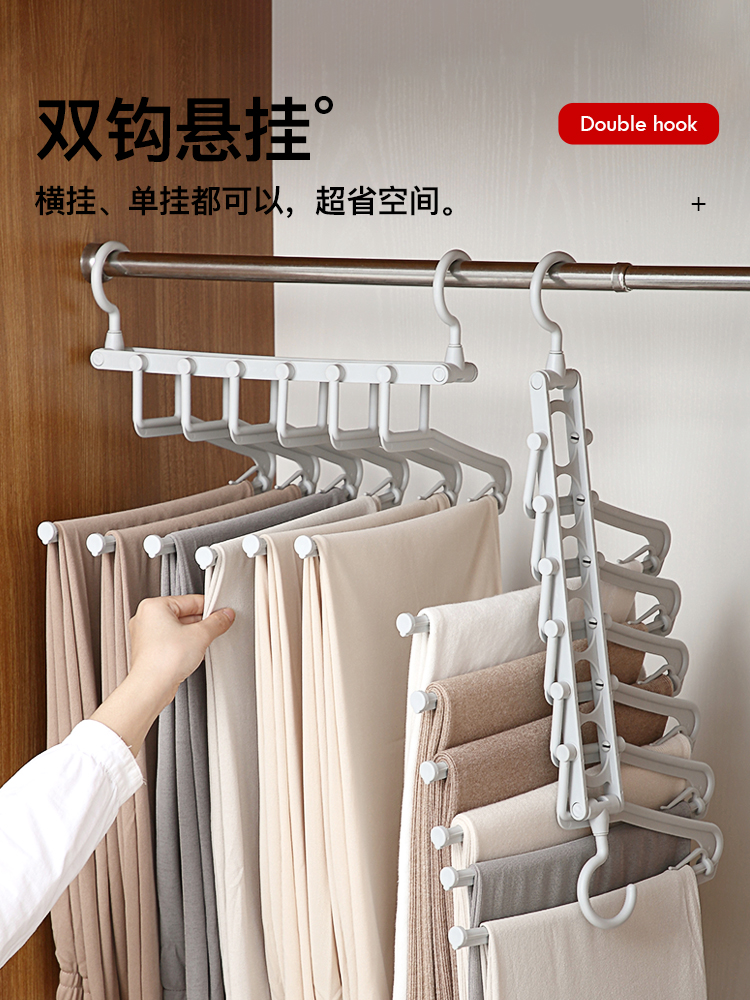 Folding trouser rack multi-functional magic trouser clip home wardrobe telescopic multi-layer hanger hanging trousers artifact storage hanger