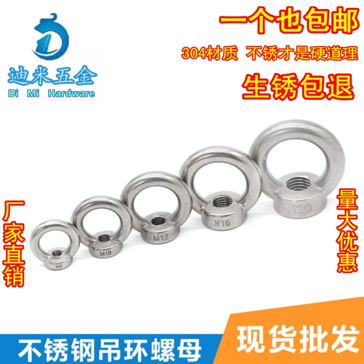 Authentic 304 Stainless steel ring nut Ring nut Marine ring mother of screw M6M8M10M12M14M16