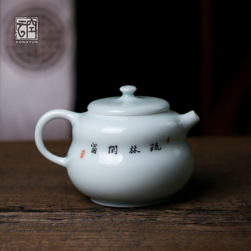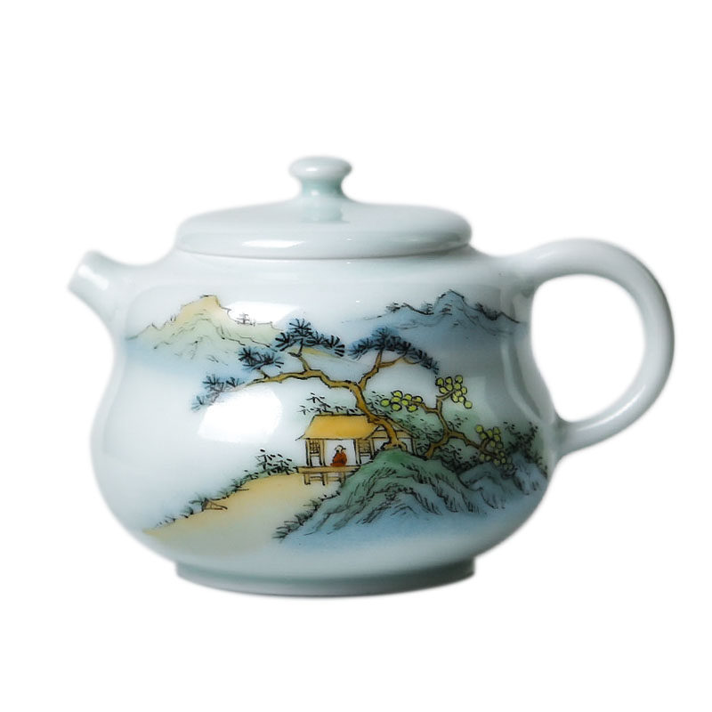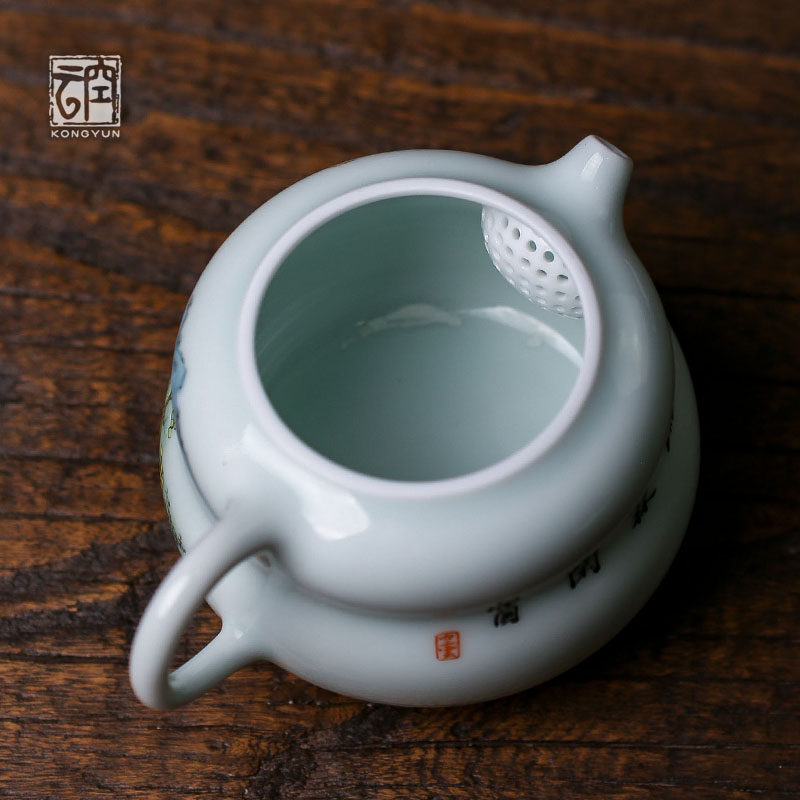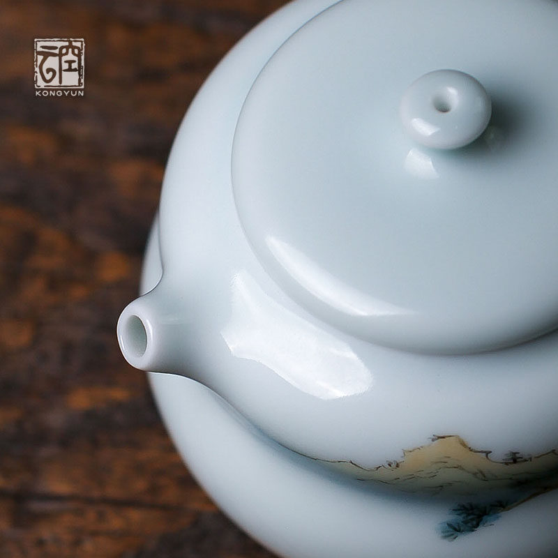 Empty cloud hand-painted humanistic landscape ceramic pot Jingdezhen Celadon retro Teapot Kung Fu Teapot Teacup Single cup