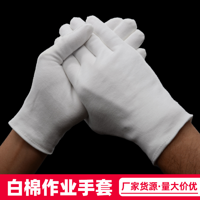 White gloves gift instrument pure cotton thickened wear-resistant text play thin summer driving work dust-free nylon yarn 24 pairs