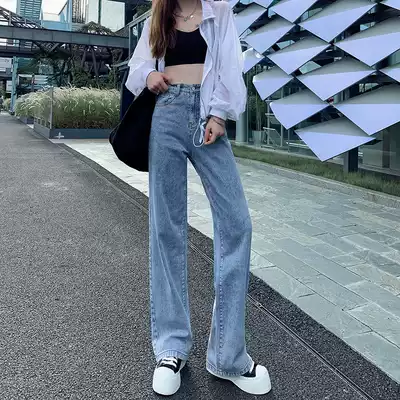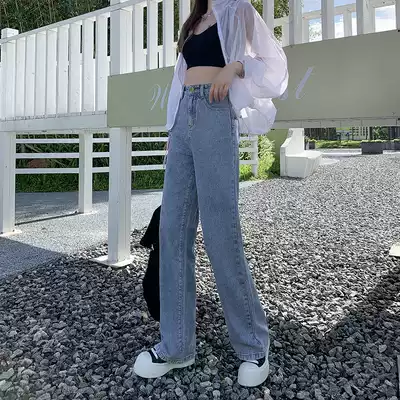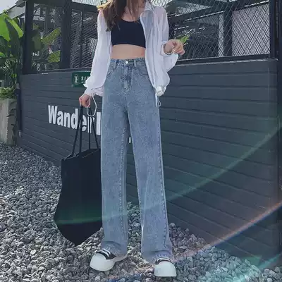 Straight jeans women's high waist wide legs ultra-thin loose thin hanging 2020 summer thin hyuna mopping pants