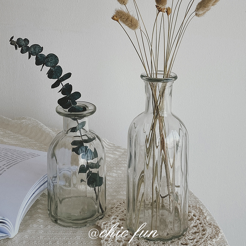 chic fun * ins wind vase glass transparent Nordic creative simple flower arrangement retro small fresh living room ornaments