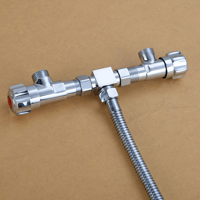 The four brass belt is connected with the three way Angle valve water distributor joint, one in and two out of the inner teeth and the outer teeth to transfer the water valve
