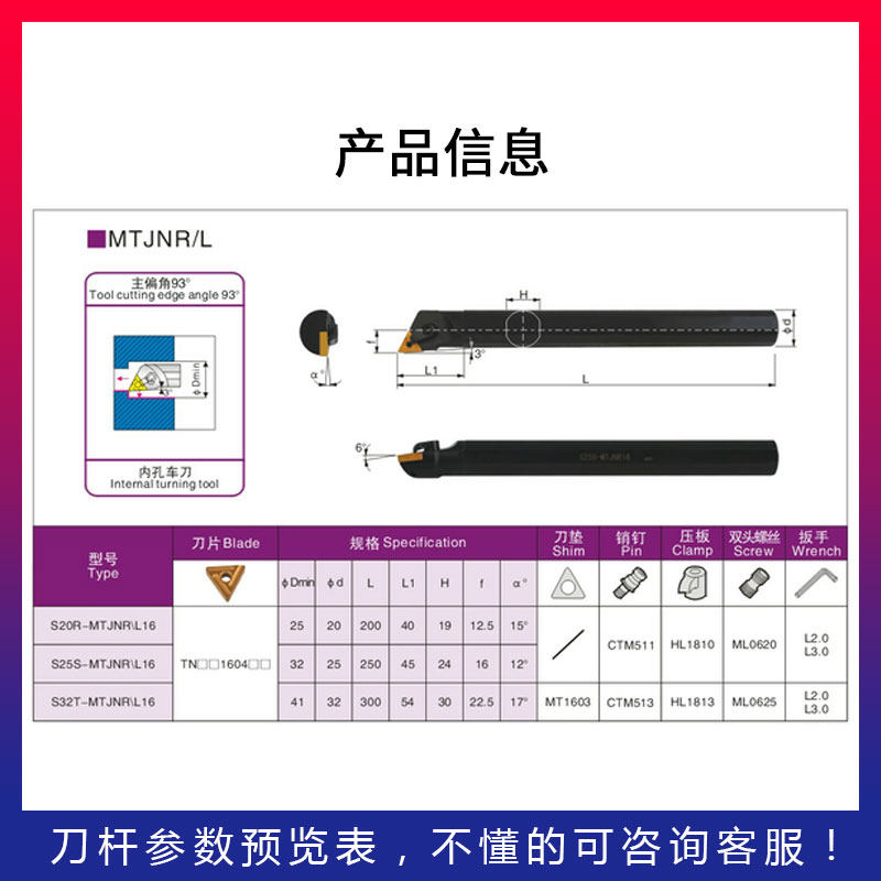 CNC inner hole turning tool 93 degree turning tool bar S25S S32T S20R-MTJNR16 inner hole boring tool bar tool
