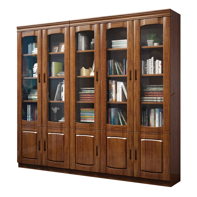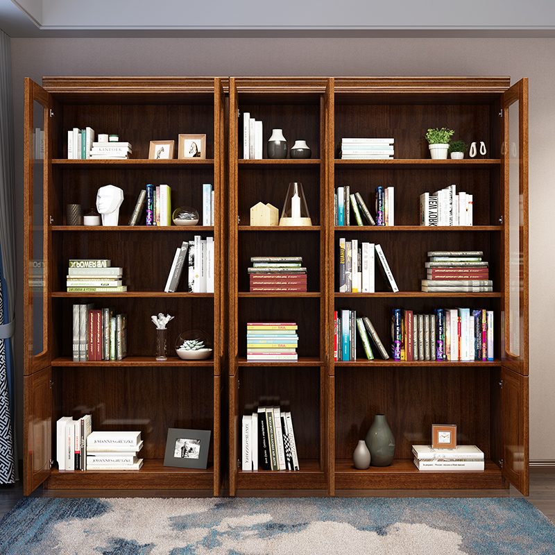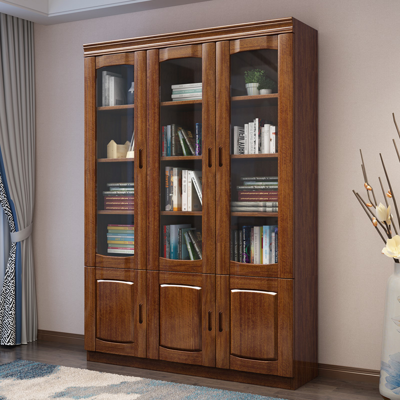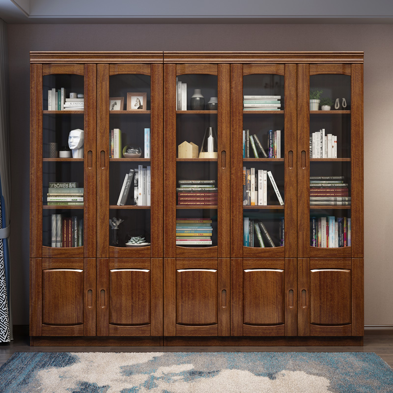 Solid wood bookcase walnut bookcase Chinese style with door bookcase all solid wood simple modern economical free combination