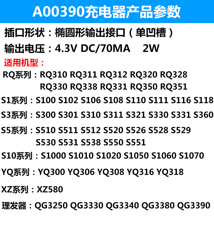 Apply Philips Razor Charger A00390 YQ308 YQ316 S1000 S1010 Power Cable